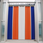 アウトドアタイプ(下部埋め込みレール仕様)は、高さが4.5mまで、開口は無制限で設置可能です。豊富な種類のキャンバスから環境に合わせた生地をお選びいただけます。